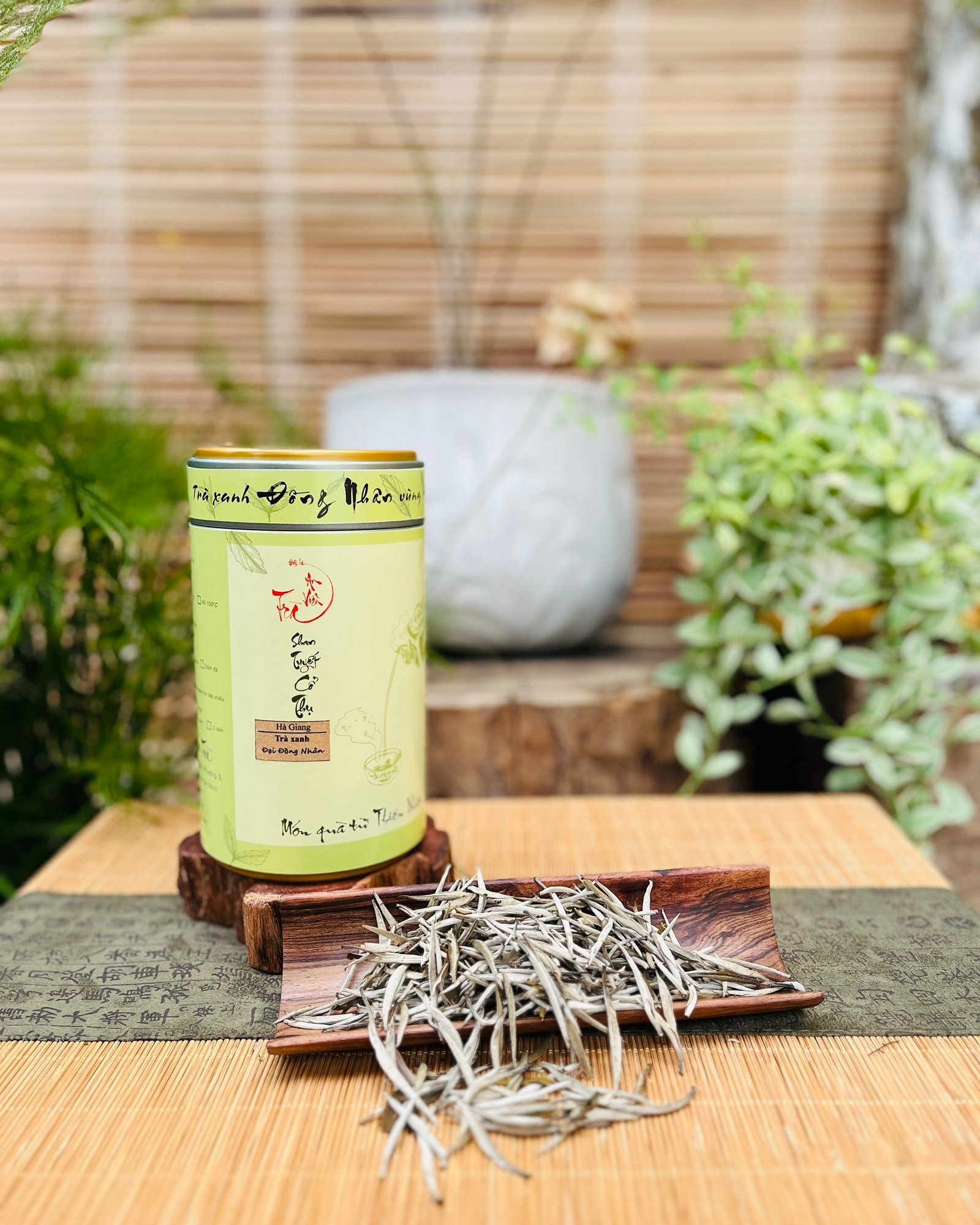 Một trong những đặc điểm dễ nhận biết nhất của Trà Xanh Đại Đồng Nhân chính là những búp trà thẳng, mảnh mai, được bao phủ bởi lớp lông tơ trắng đặc trưng của trà Shan Tuyết cổ thụ. Điều này không chỉ giúp bảo vệ búp trà khỏi sâu bệnh tự nhiên, mà còn tạo nên vị chát nhẹ và hậu ngọt thanh khi uống.